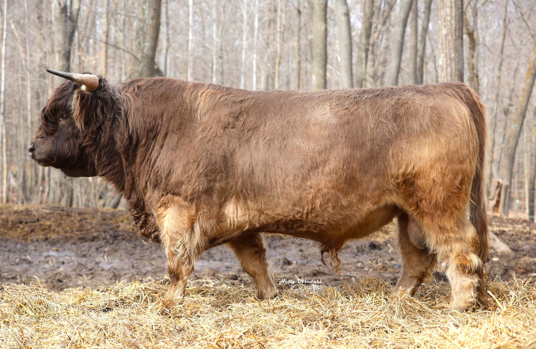 WL Jaguar is as cool and collected as you can find in a bull.  He is super docile, halter broke and easily leads from pasture at the site of a bucket.  His sire, Finley Falls Duncan, won the Champion Bull at more than 10 shows in a row.  He is the only bull to win the NWSS (Denver) as the Champion Bull two years in a row.  His dam is a tremendous cow, Schon Boden's Josie, who weighs 1,495 lbs. at 13 years old.  Josie is an American Highland Cattle Association (AHCA) Impact Dam.  Qualifies for global export to CSS-certified countries.